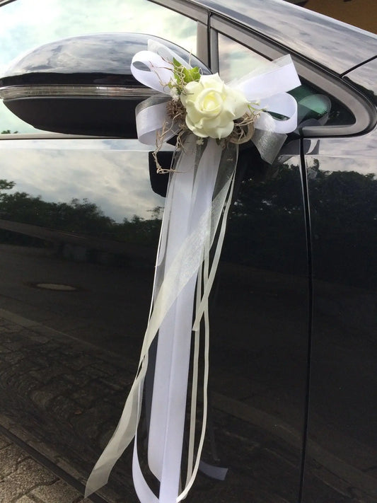 2 Autoschleifen für Seitenspiegel Kirchenbank in Wunschfarbe große Schleife Dekoration Rose