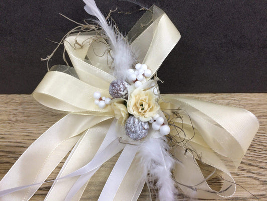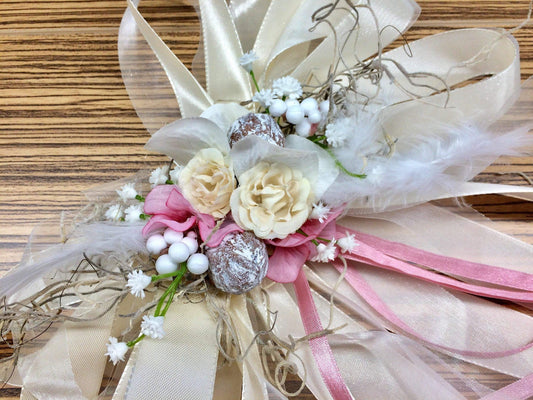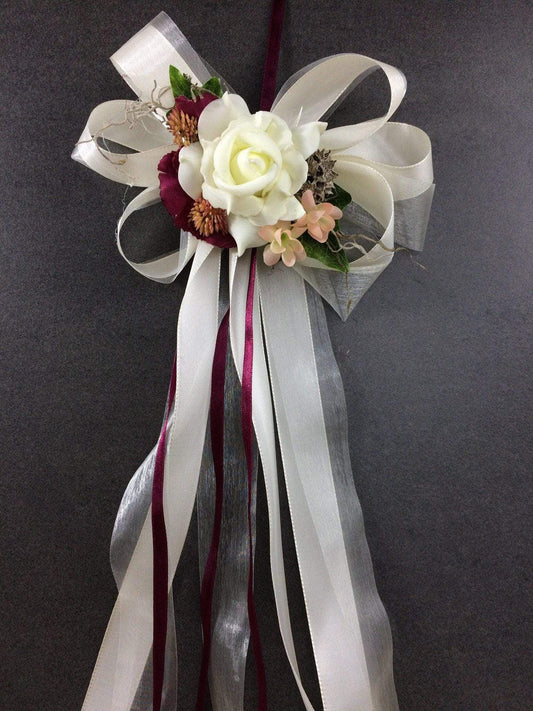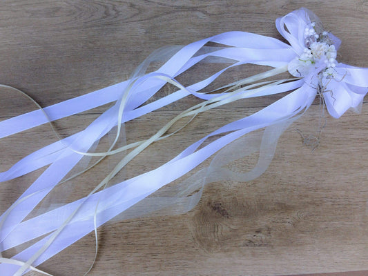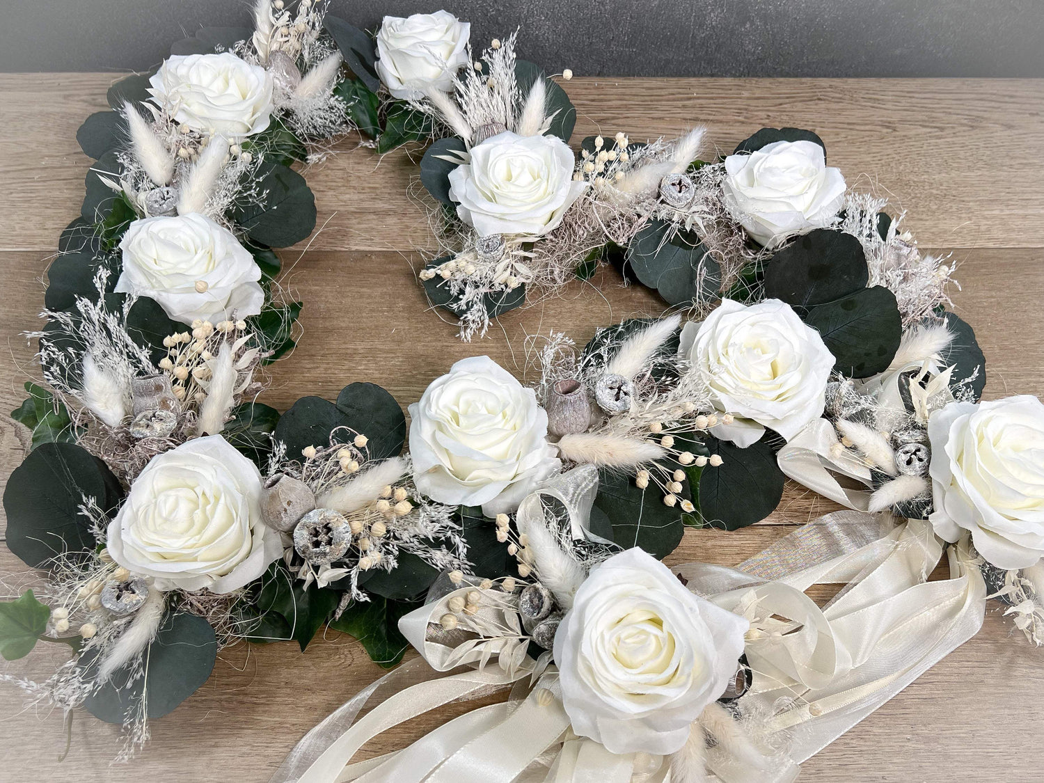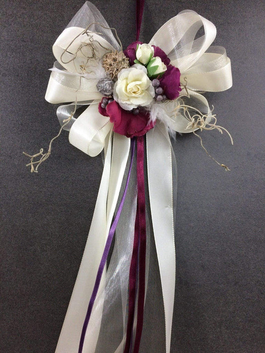 2 Autoschleifen für Seitenspiegel Trockenblumen Seidenblumen Kirchenbank in Wunschfarbe große Schleife Dekoration Rose
