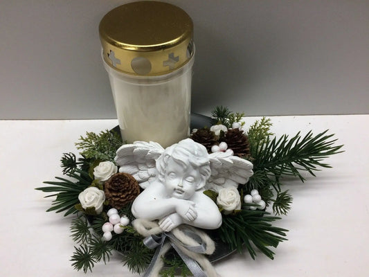 Grabgesteck Grabschmuck Allerheiligen mit Kerze 20cm Grabdeko Grabdekoration