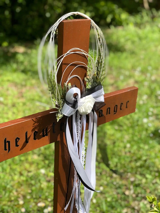 Grabgesteck Grabschmuck Schleife Trauerschleife Kreuz Kreuzschleife Kreuzdeko Grabdeko Grabdekoration