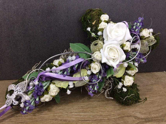 Grabgesteck Grabschmuck Urnengrab Gesteck Grab Allerheiligen Mooskreuz Kreuz Rose Grave Arrangument grave flowers longlasting