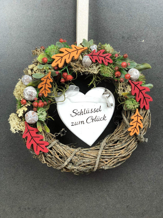 Türkranz 22cm Türdeko Türschmuck Herz Schlüssel zum Herz Modern Tür Schmuck Herbst herbstlich ganzjährig Herbst