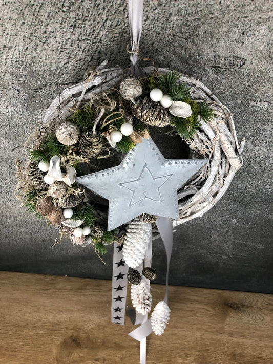 Advent Türkranz Türdeko Türschmuck Weihnachten Stern Weidenkranz Grün Weiß