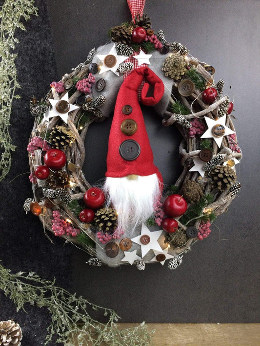 Advent Türkranz Türdeko Türschmuck Weihnachten Wachs Weidenkranz Wichtel Santa Wihnachtsmann