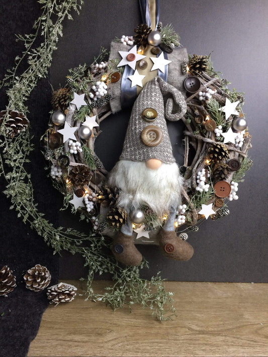 Advent 45cm Türkranz mit 20er LED Türdeko Türschmuck Weihnachten Weidenkranz Wichtel