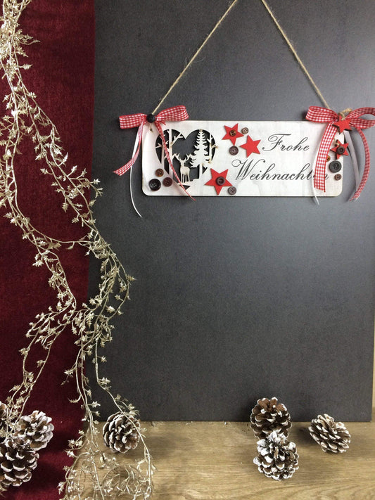 Advent Schild Frohe Weihnachten Türdeko Türschmuck Weihnachten Knöpfe Sterne