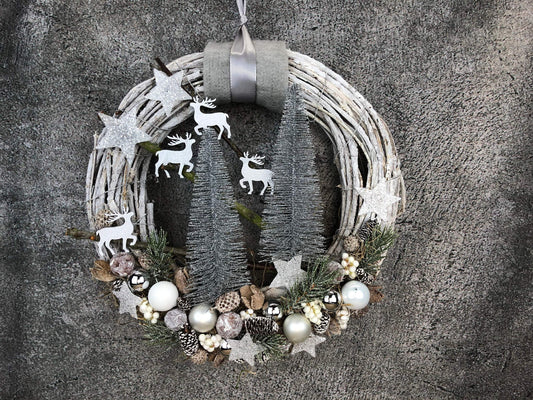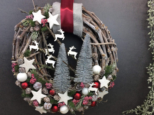 Advent Türkranz Türdeko Türschmuck Weihnachten Weidenkranz Wachskranz Adventskranz Sterne Tannenbaum Hirsch Tanne Filz Draht