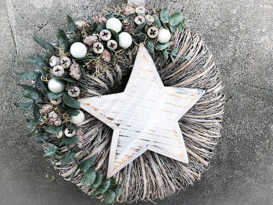 Türkranz Stern Advent Kranz Eukalyptus Stern Türdekoration Weihnachten Weidenkranz