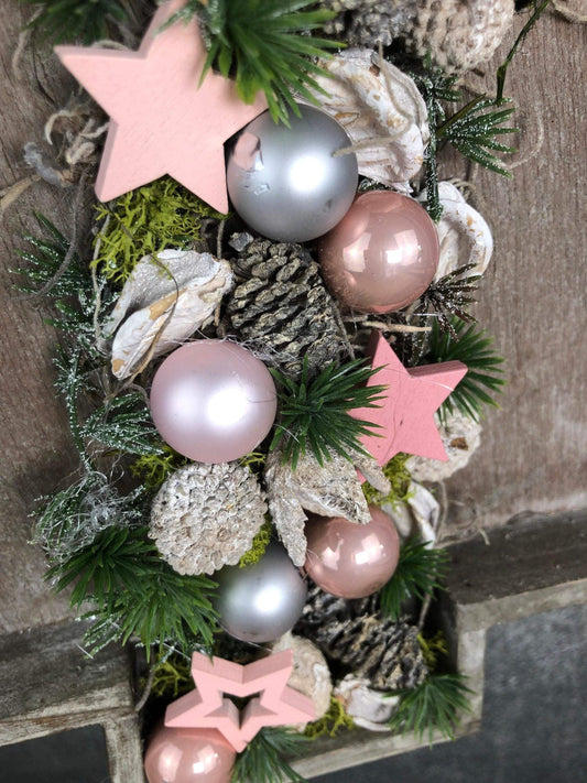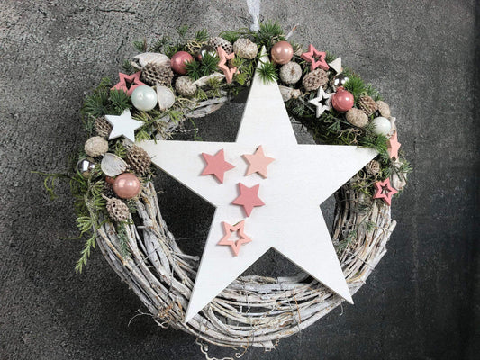 Türkranz Stern Advent Kranz Rosa Stern Türdekoration Weihnachten Weidenkranz