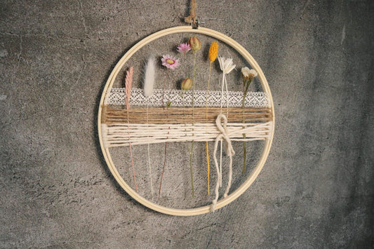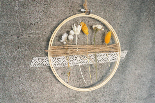 Türkranz Kranz Ring Stickrahmen Gräser Holzring Stickring Stickreif Trockenblumen Natur natürlich Hoop Fensterdeko