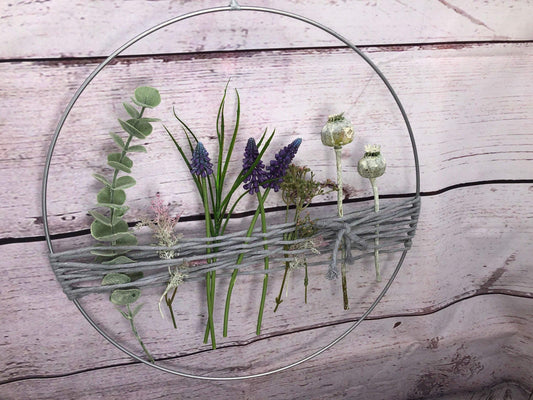 Türkranz Kranz Ring Hyazinthe Traubenhyazinthe Muskari Mohn Eukalyptus Seidenblumen Wandkranz Trockenblumen Natur natürlich Hoop Fensterdeko