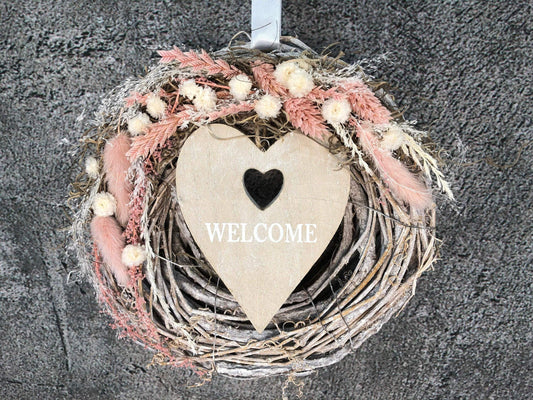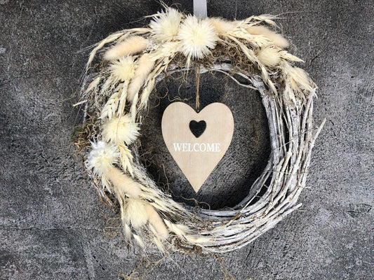 Türkranz Kranz Türschmuck Welcome Herz Gräser Herbst Herbstlich Trockenblumen Trockenmaterial Natur natürlich dried bouquet dried Flowers