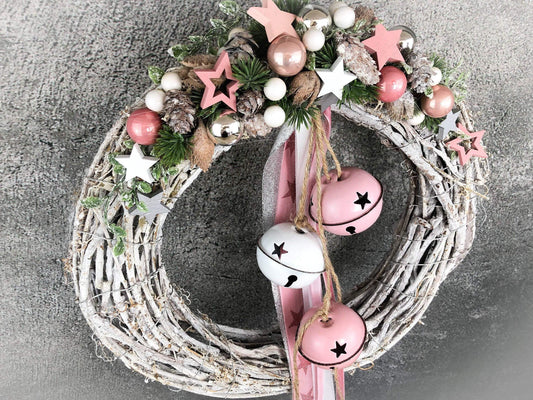 Türkranz Stern Advent Kranz Rosa Glocken Schellen Glöckchen Türdekoration Weihnachten Weidenkranz