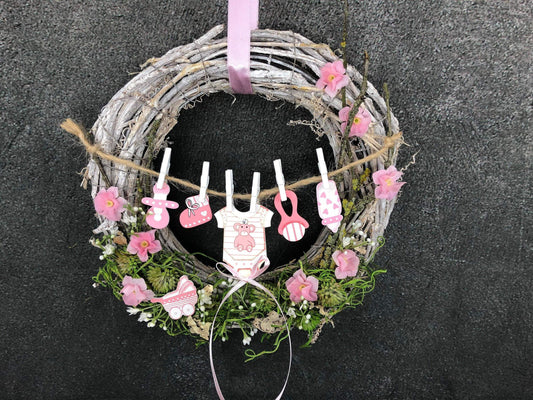 Türkranz Türdeko Türschmuck Geburt Wäscheleine Schnuller Trinkflasche Rassel Body Strampler Modern ganzjährig Tür Geschenk zur Geburt