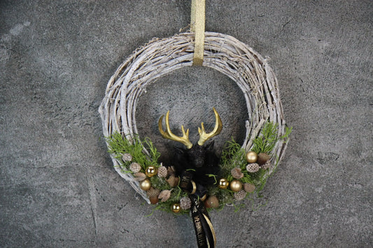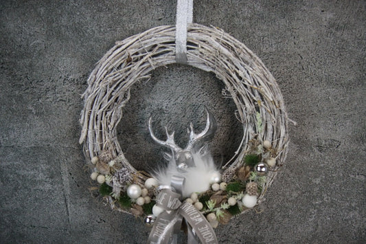 Türkranz Türdeko Türschmuck Weihnachten Weidenkranz Hirsch Zapfen Stern Tanne Band Modern