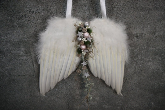 Türkranz Türdeko Türschmuck Weihnachten Weidenkranz Engel Engelsflügel Zapfen Stern Apfel Knöpfe Tanne Band Modern