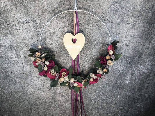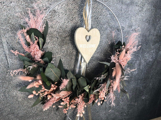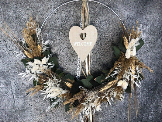 Türkranz Welcome Herz Kranz Ring Eukalyptus Gräser Wandkranz Trockenblumen Natur natürlich Hoop Herbst Herbstlich