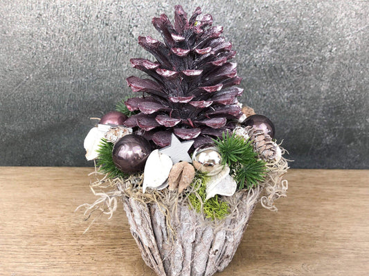 Adventsgesteck Gesteck Zapfen Zapfe Beere Modern Rund Moos Thuja Zapfen Rot Weiß