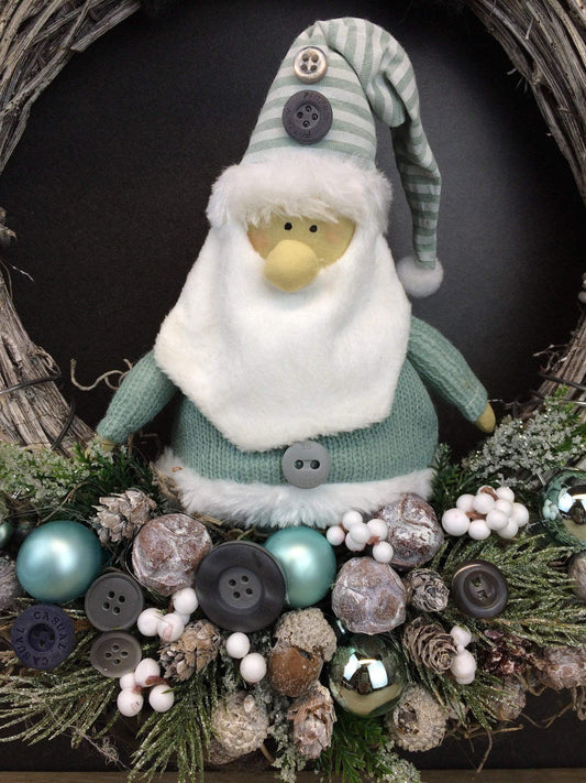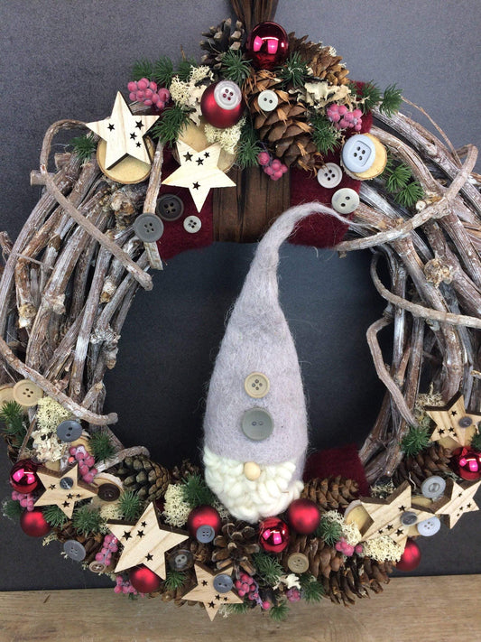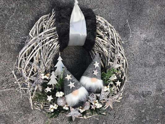 Advent Türkranz Türdeko Türschmuck Weihnachten Weidenkranz Wichtel Stern Grau Weiß