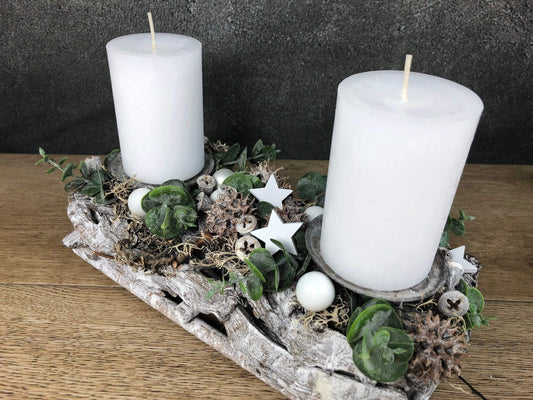 Adventsgesteck Gesteck Eukalyptus Künstlich Modern Länglich Zapfen Weiß