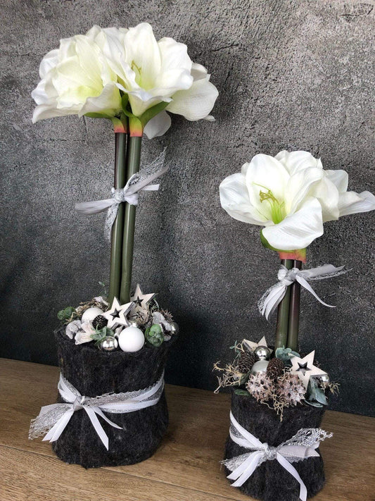 Adventsgesteck Amaryllis Gesteck Eukalyptus Künstlich Modern Zapfen Weiß