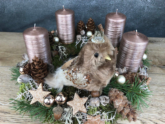 Adventskranz Adventskalender Vogel Zapfen Moos Sterne Kerzen Tanne Zweige Modern Natürlich Getrocknet Künstlich Haltbar