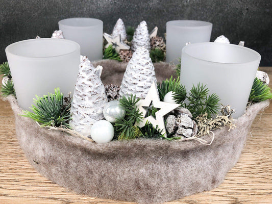 Adventskranz Adventskalender Wachs Zapfen Gläser Maxi Sterne Filz Moos mehrjährig groß rund