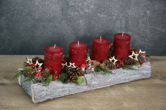 Adventskranz Adventskalender Pilze Modern Länglich Apfel Sterne Eicheln Zapfen