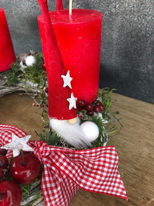 Adventskranz Adventskalender Wichtel Santa Rot Weiß Stern
