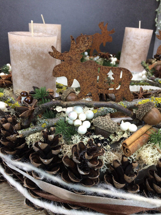 Adventskranz Adventskalender Zapfen Pilz Elch Zimt Kerzen Tanne Filz Modern Natürlich Getrocknet Künstlich Haltbar
