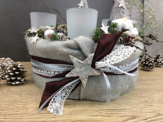 Adventskranz Adventskalender Wichtel Zapfen Sterne Kerzen Kugeln Eicheln Tanne Zweige Filz Modern Natürlich Getrocknet Künstlich Haltbar