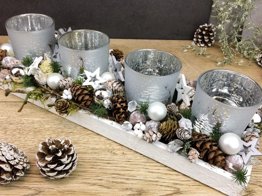 Adventskranz Adventskalender Modern Länglich Gläser Tablett in zwei verschiedenen Größen L und XL