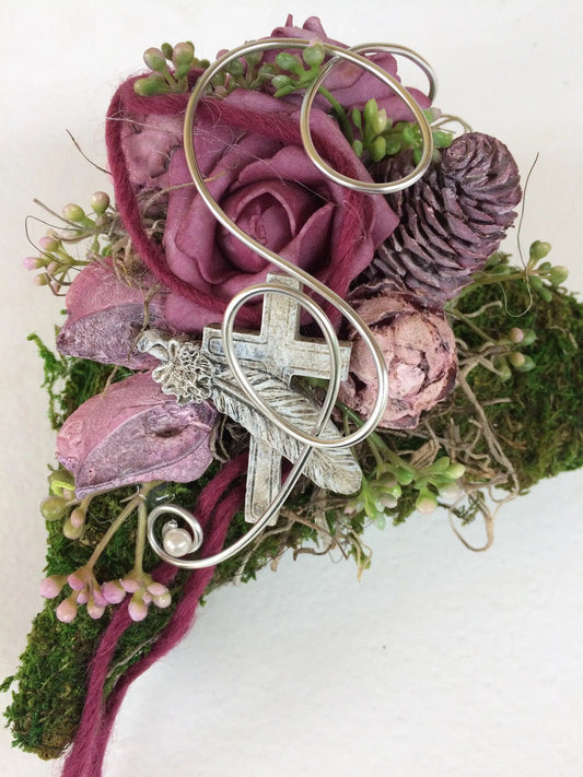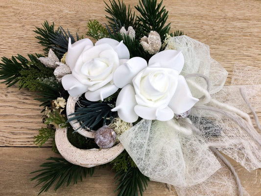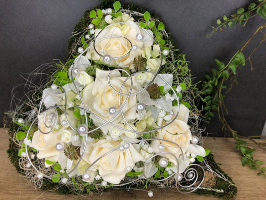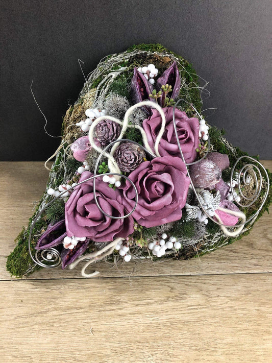 Grabgesteck Grabschmuck Gesteck Grab Allerheiligen Winterlich Weihnachten Herz Moosherz Rose Grave Arrangument grave flowers longlasting