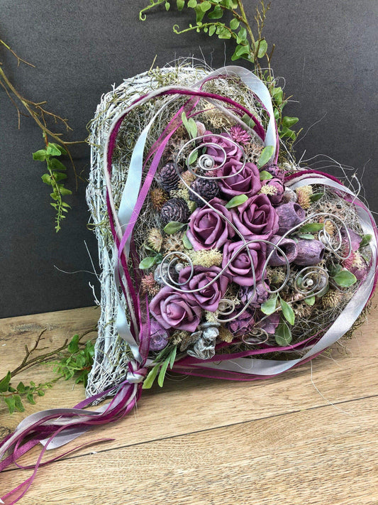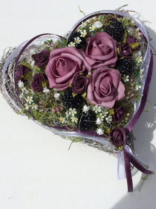 Grabgesteck Grabschmuck Rose Brombeeren Lila Herz Grab Band Schleierkraut Rosen Grabdekoration Grabschmuck Allerheiligen