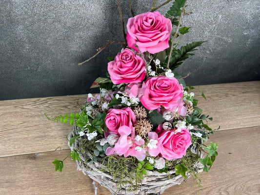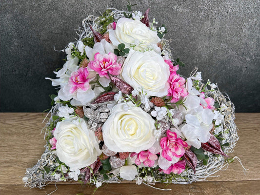 Grabgesteck Rosen Hortensien Grabschmuck Herz Farbwunsch Grabdeko Grabdekoration