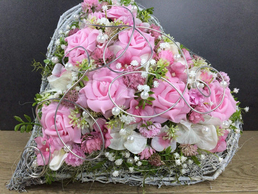 Grabgesteck Rosen Kirschblüten Wiesenblumen Grabschmuck Herz Grabdeko Grabdekoration