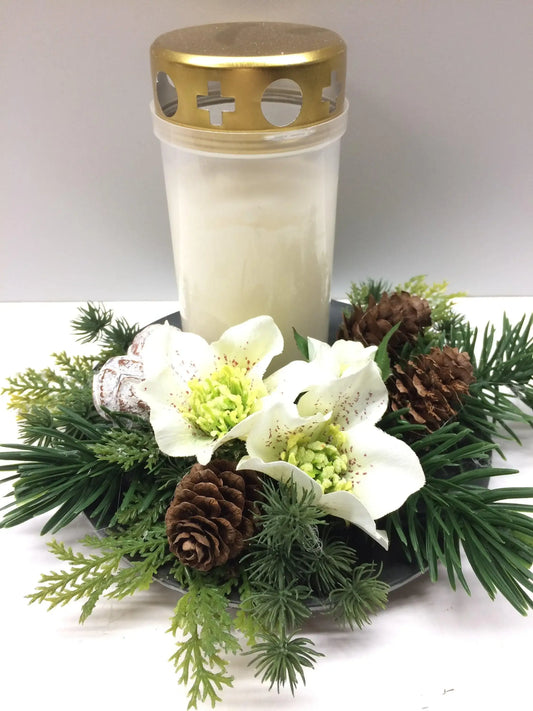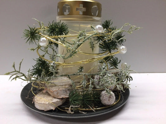 Grabgesteck Grabschmuck Allerheiligen mit Kerze 20cm Grabdeko Grabdekoration