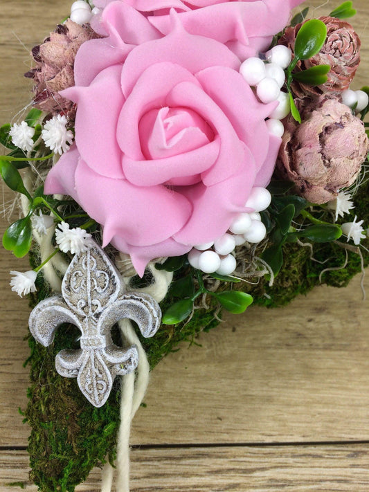 Grabgesteck Grabschmuck Gesteck Herz Moosherz 21x16cm Grabdeko Grabdekoration