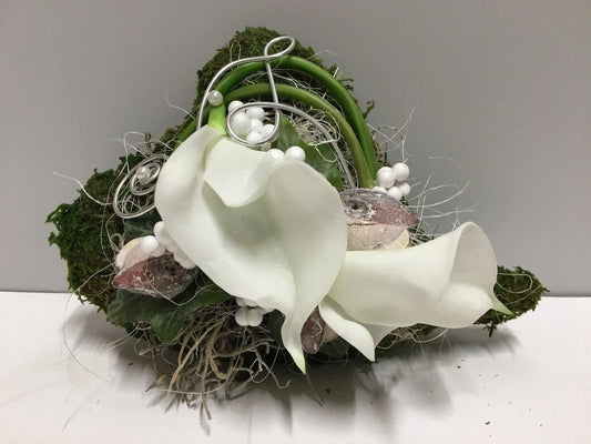 Grabgesteck Grabschmuck Urnengrab Gesteck Grab Allerheiligen Calla Winterlich Herz Moosherz Rose Grave Arrangument grave flowers longlasting