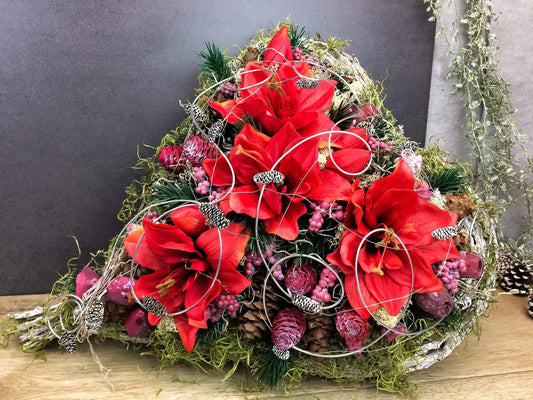 Grabgesteck Grabschmuck Amaryllis Herz 45cm Grabdekoration Grabschmuck Exoten Tannen Zapfen Amaryllis