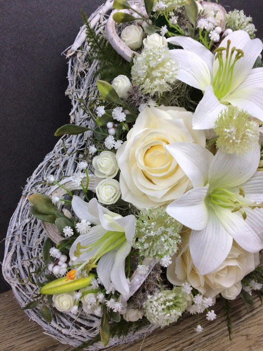 Grabgesteck Rosen Lilien Grabschmuck Herz Farbwunsch Grabdeko Grabdekoration