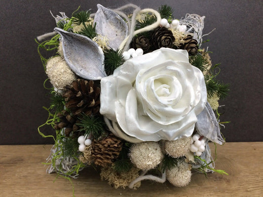 Grabgesteck Allerheiligen Wachsrosen Wachsrose Rose Grabschmuck Kissen Islandmoos Zapfen Exoten Grabdekoration