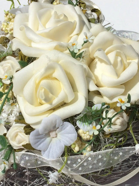 Grabgesteck Grabschmuck Rose Hortensie Schleierkraut Herz Beeren Spitze Band Rebe Grabdekoration Grabschmuck Allerheiligen