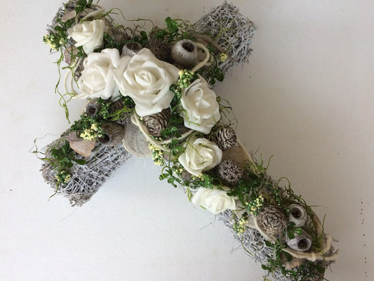 Grabschmuck Grabgesteck Gesteck Grab Allerheiligen Reebkreuz Kreuz Rose Grave Arrangument grave flowers longlasting Grabdeko Grabdekoration