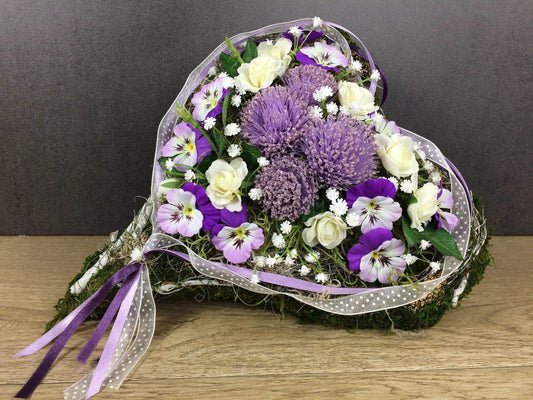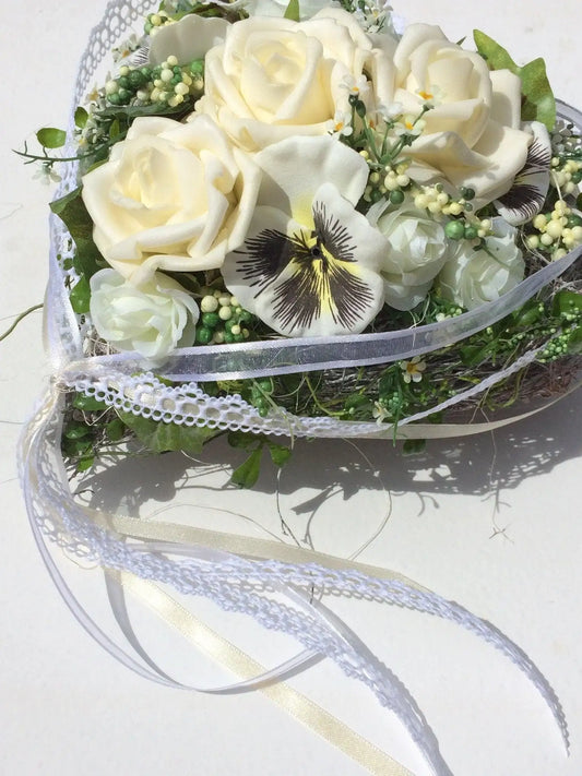 Grabgesteck Grabschmuck Herz Rosen Hornveilchen Stiefmütterchen Schleierkraut Grabdeko Grabdekoration