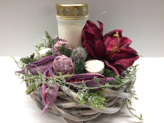 Grabgesteck Gesteck Grab Allerheiligen mit Kerze 22cm Grabdeko Grabdekoration Allerheiligen