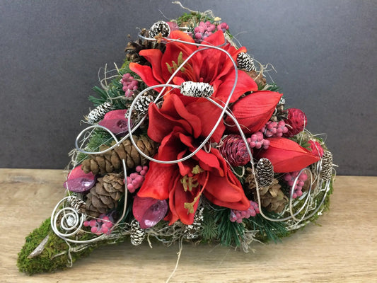 Grabgesteck Grabschmuck Amaryllis Herz Grabdekoration Grabschmuck Exoten Tannen Zapfen Amaryllis