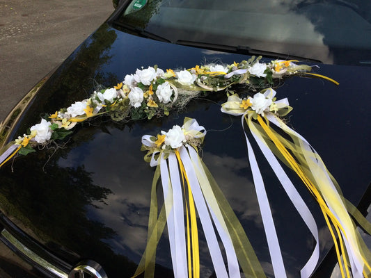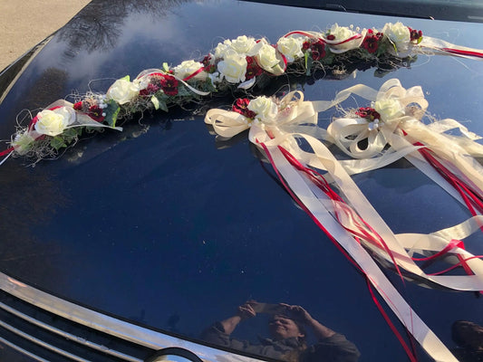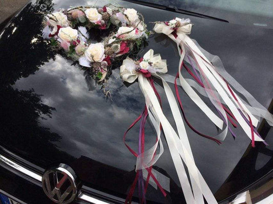 Autoschmuck Set 3 Teilig Gesteck und Schleifen Autodekoration Hochzeit Kutschen Kutschendekoration Deko Dekoration Hochzeit Wedding