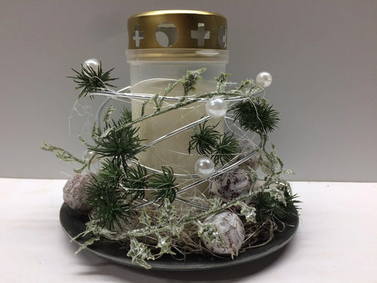 Grabgesteck Florales Windlicht Allerheiligen mit Kerze 20cm Grabdeko Grabdekoration