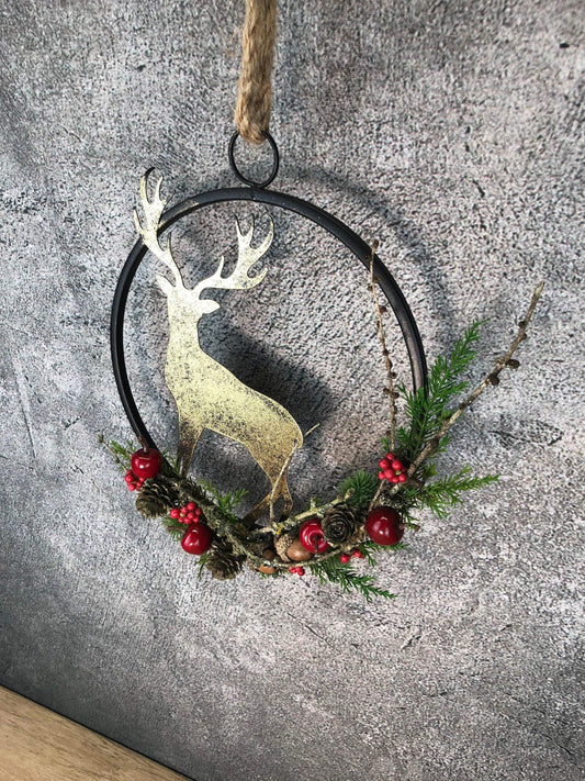 Türkranz Kranz Hirsch Advent Modern Ring Fenster Fensterschmuck Fensterdeko Deko Weihnachten Zapfen Wachszapfen